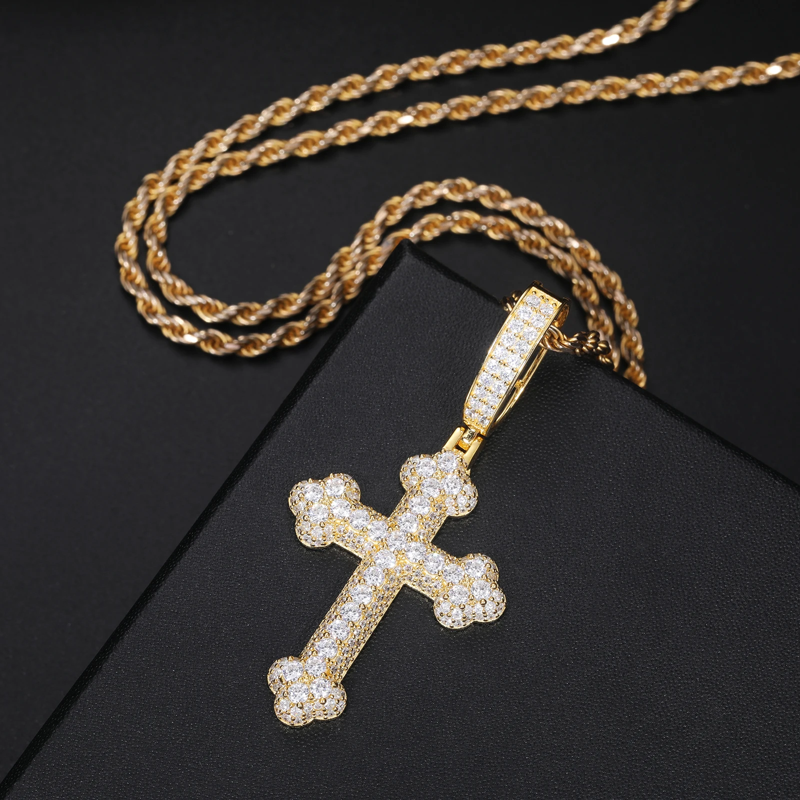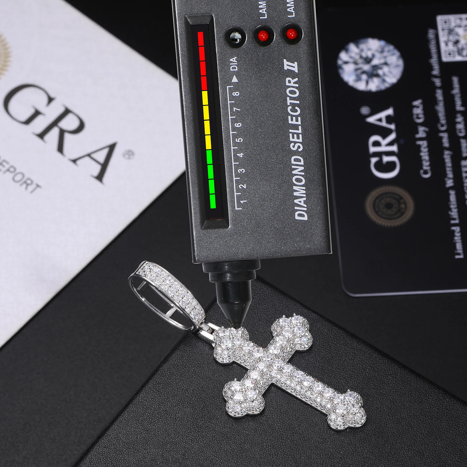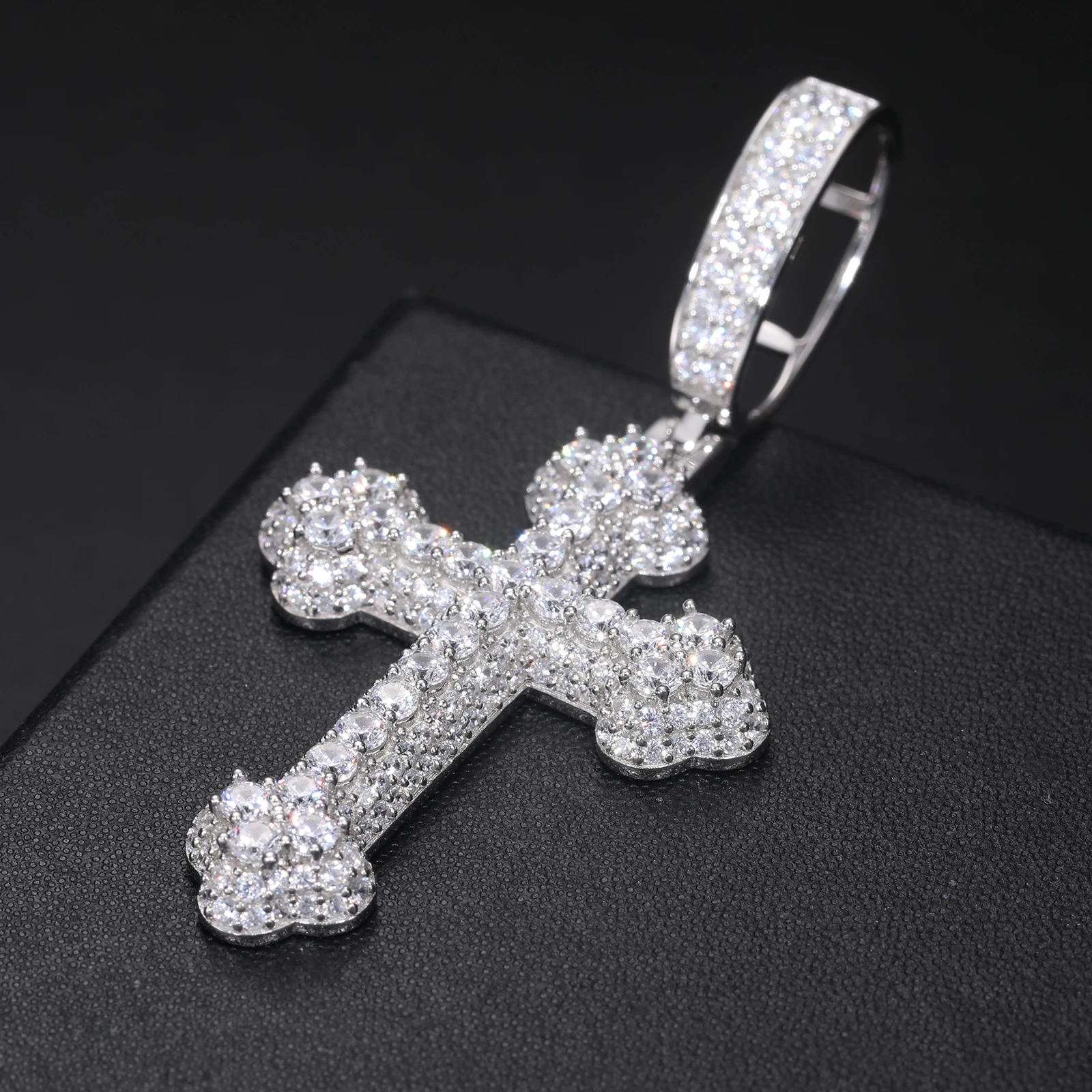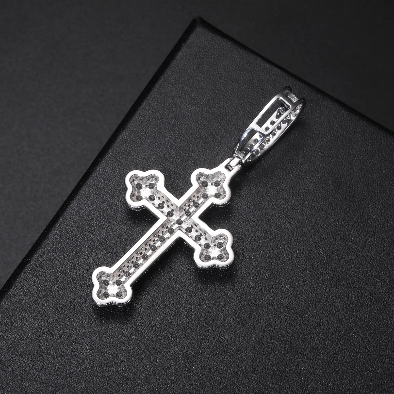 925 Sterling Silver Gra Certified Vvs Moissanite Diamond Iced Out Iris Cross Pendant