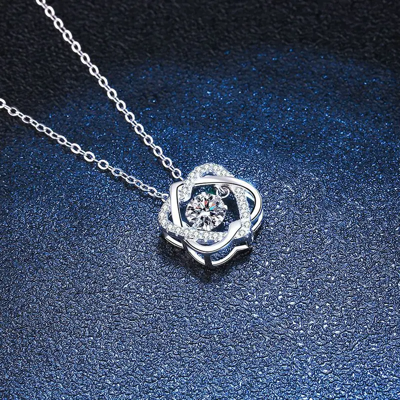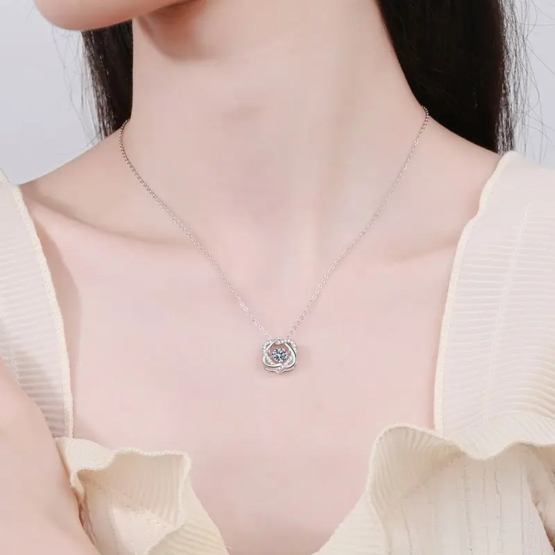 Moissanite Necklace For Women 100% Sterling S925 Silver With White Gold Plated Lab Diamond Jewelry Wedding Pendant with O-chain