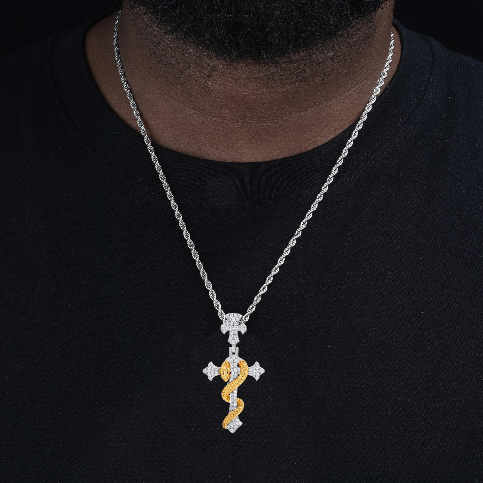 Iced Out Snake Cross Pendant Necklace GRA Certified Moissanite 925 Silver Hip Hop Religious Charm Fine Jewelry For Woman Man
