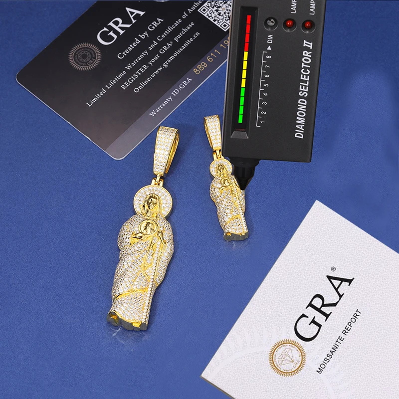 Solid 925 Sterling Silver San Judas Tadeo Pendant Necklace Moissanite Pass Diamond Tester Religion Pendant Hip Hop Mens Jewelry